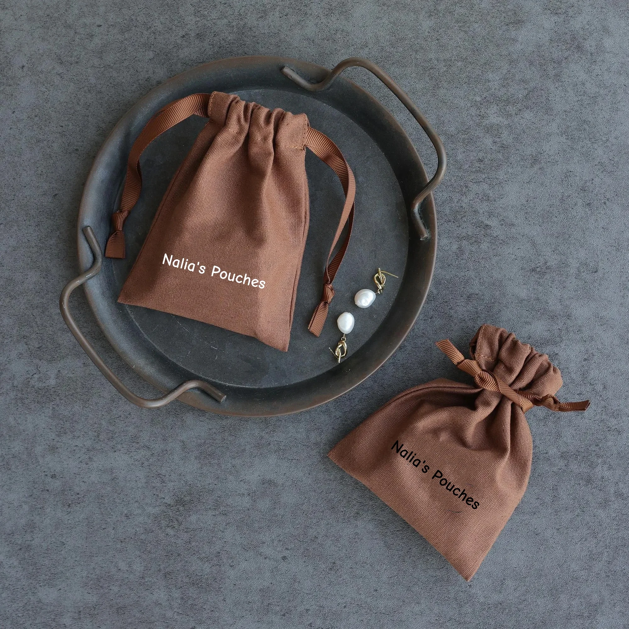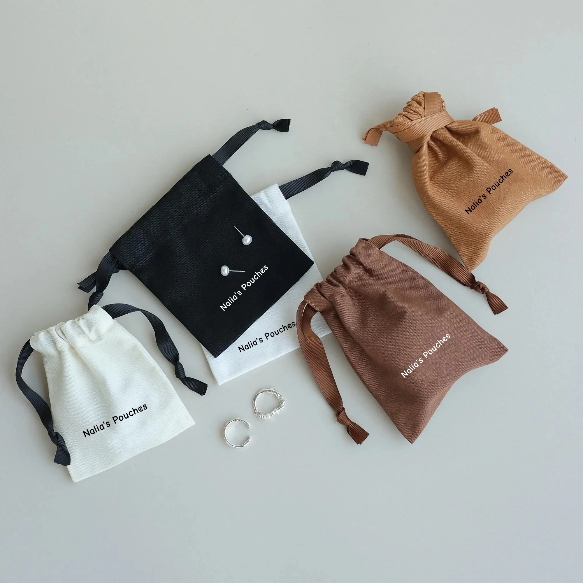 Brown cotton canvas bag personalized logo custom jewelry packaging bag with ribbon dusty bag gift bag candle bag jewelry bag
