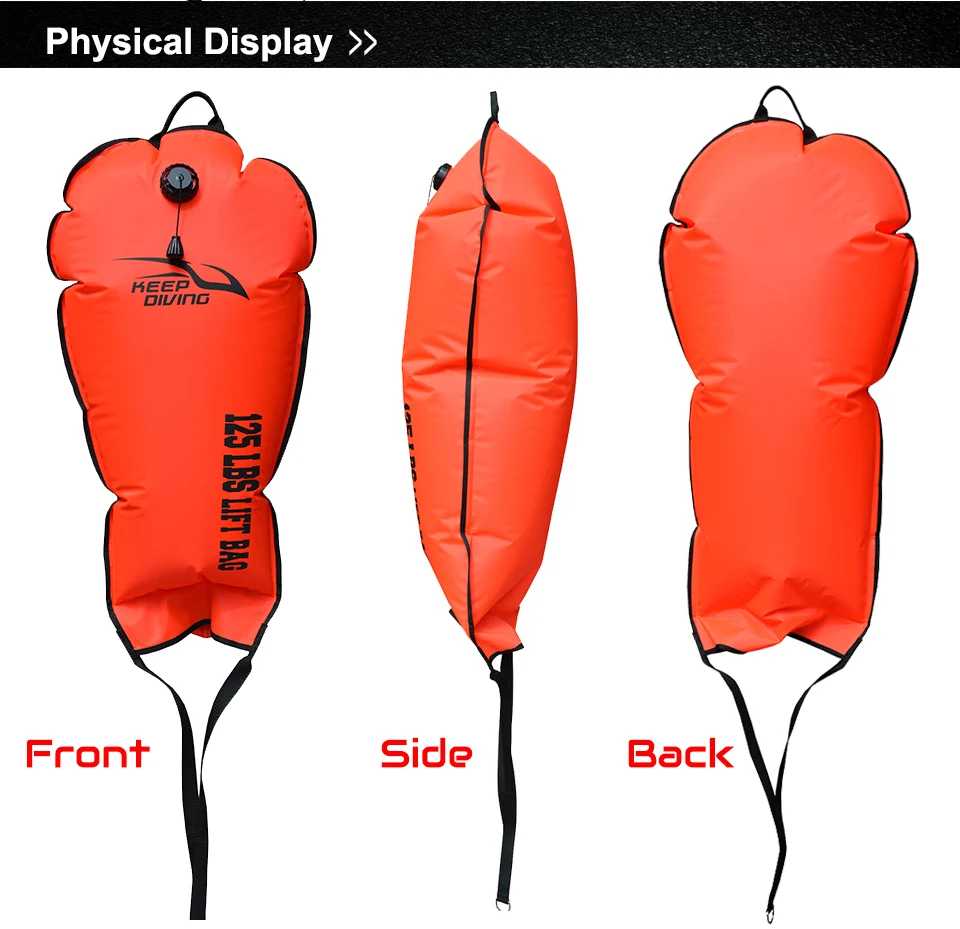 KEEP DIVING Scuba Diving 60LBS/70LBS/125LBS/140LBS Lift Bag Big Exhaust Valve with a Head Pumping