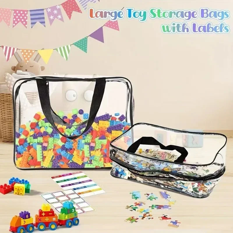 Large Clear PVC Storage Bag Travel Waterproof Organizer Bags Cosmetics Pouch Reusable Toy Storage Bag for Building Block Puzzle