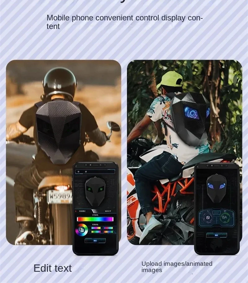 DIY Mobile APP control can change the display of text, pictures, animation can be displayed in a variety of ways. Any scene is played at any time, personality shows cool, pleasing to the surprise effect. Backpack is suitable for a variety of scenes such as traveling, walking, walking, going to school ....