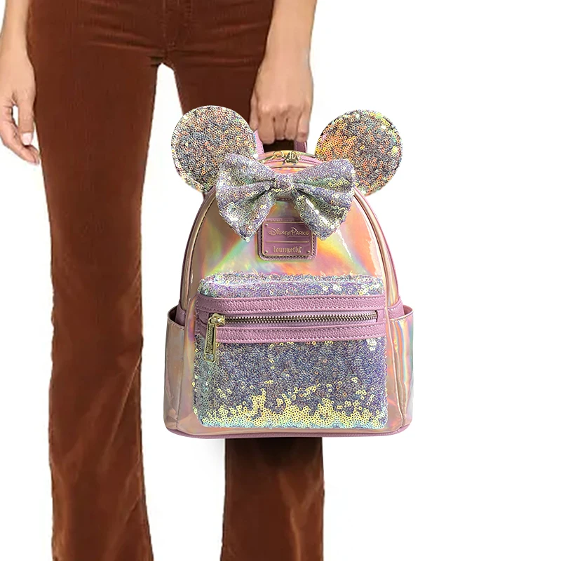 PU Leather Stitch Women Double Shoulder Backpack Donald Goofy Mickey Lady Bags Sequin Schoolbag Handbag Mummy Bag Girls